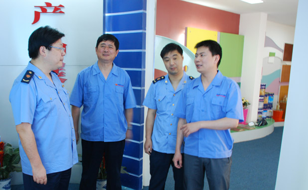 圖為:工商拱墅分局姚瑜局長(左一)參觀公司男女羞羞视频APP下载陳列室。